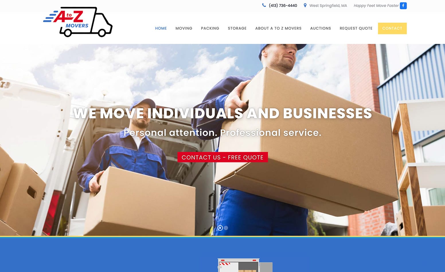 Check out this custom WordPress website design our web developers for created for A to Z Movers in West Springfield, MA.