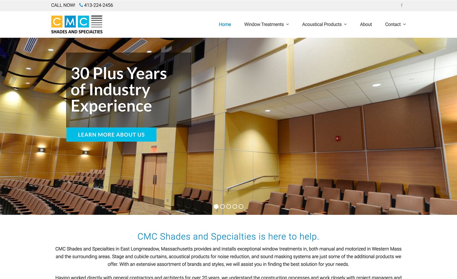 Explore our custom WordPress website design for CMC Shades and Specialties in East Longmeadow, MA. We’ve crafted a tailored website to showcase CMC Shades and Specialties’ unique range of high-quality window treatments and specialty products.