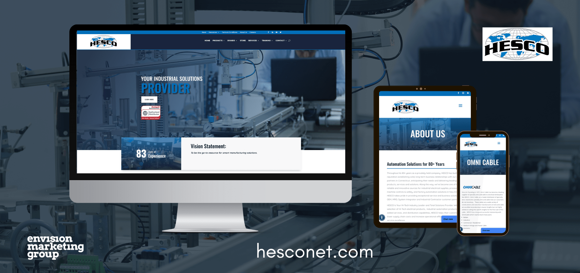 HESCO, located in Rocky Hill, CT, has become one of the most reliable and innovative sources for industrial electrical supplies, process controls, machine controls & safety, and factory automation solutions in New England. We recently crafted a custom website for HESCO, designed to reflect their commitment to safety and innovation.