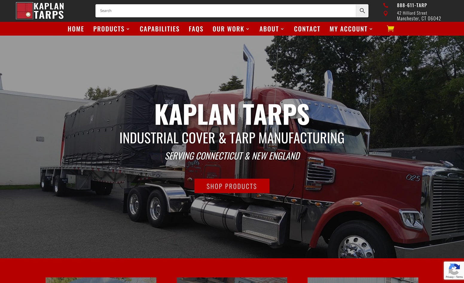 View our custom WordPress website design for Kaplan Tarps in Manchester, Connecticut. We developed a site that perfectly represents their expertise in providing high-quality tarps and covering solutions. The design features a clean, professional layout that showcases their extensive product range and industry experience.