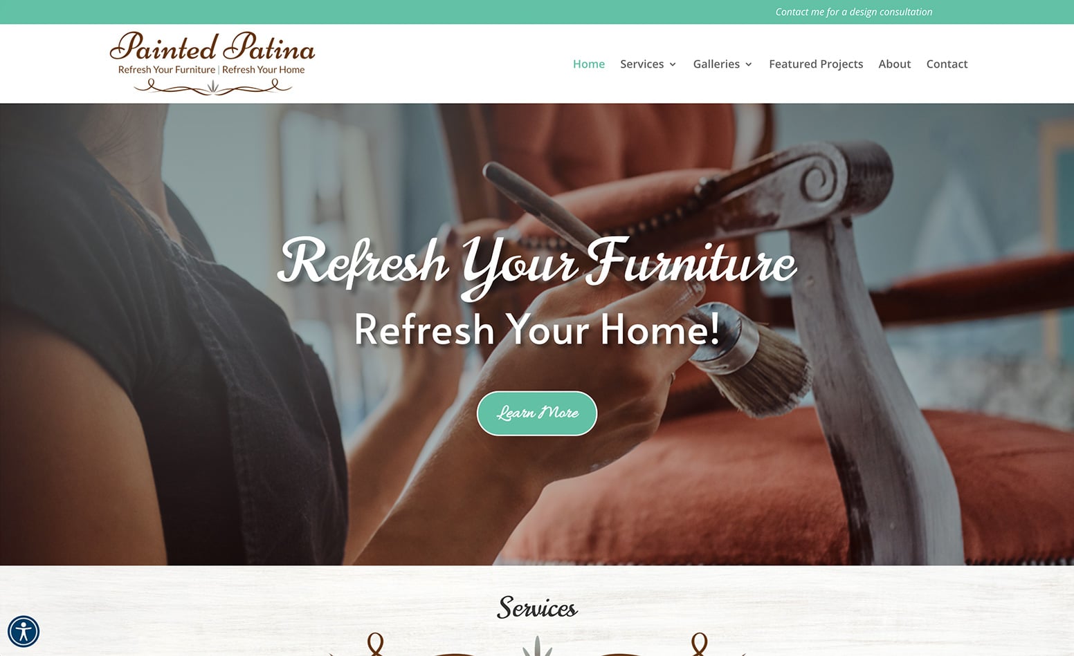 Our web design team previously completed a custom WordPress website design for Painted Patina in Western MA.